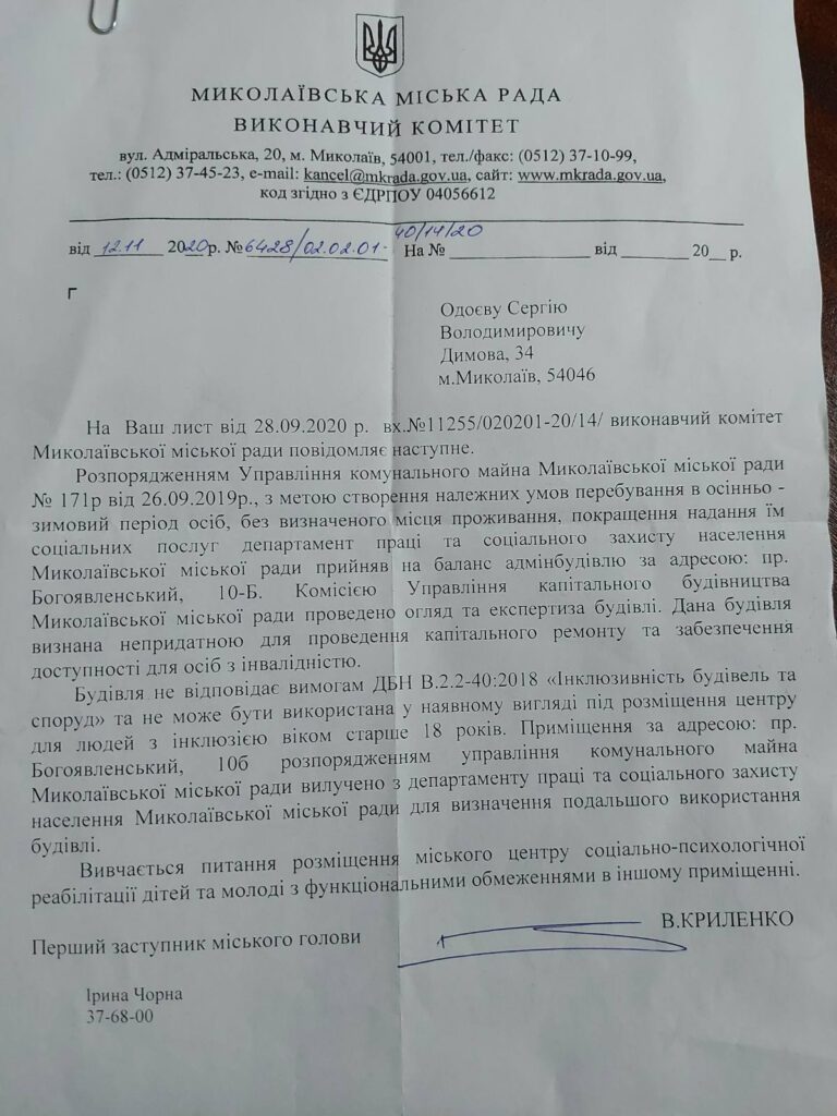 Николаевские чиновники заявили о непригодности здания планируемого Центра реабилитации, которое обещали людям с инвалидностью