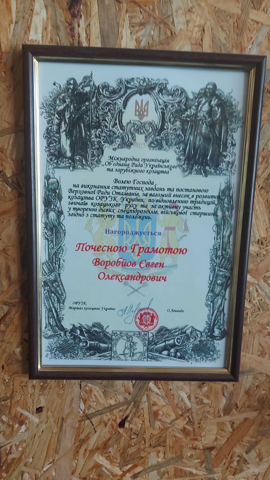 Евгений Воробьев награждён Козацкой Грамотой